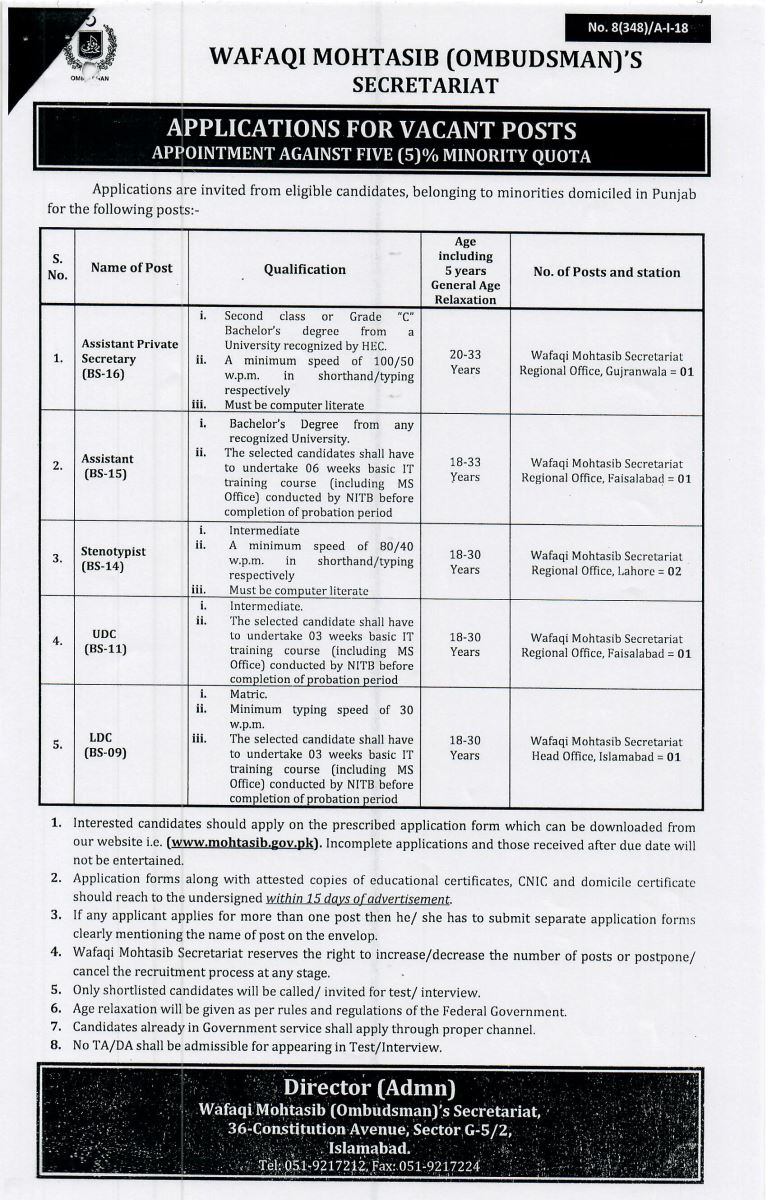 Wafaqi Mohtasib (Ombudsman)'s Secretariat وفاقی محتسب سیکر ٹیر یٹ