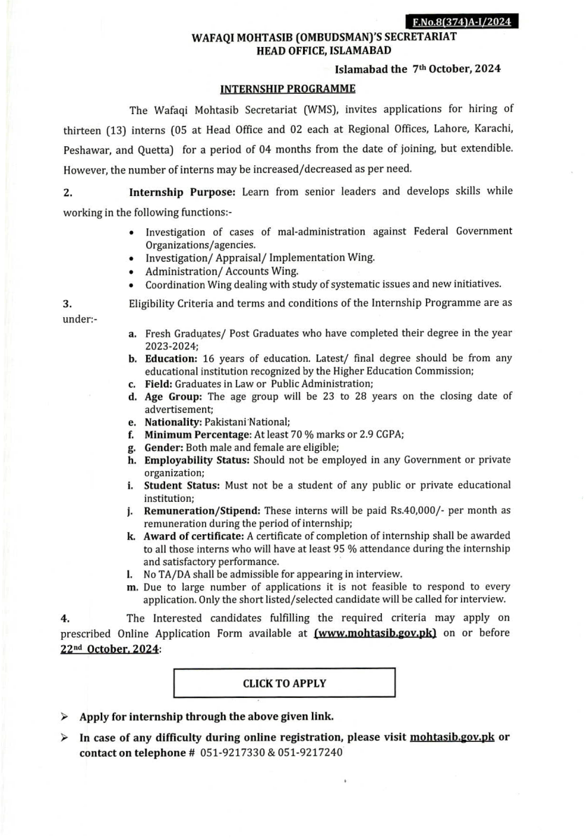 Wafaqi Mohtasib (Ombudsman)'s Secretariat وفاقی محتسب سیکر ٹیر یٹ