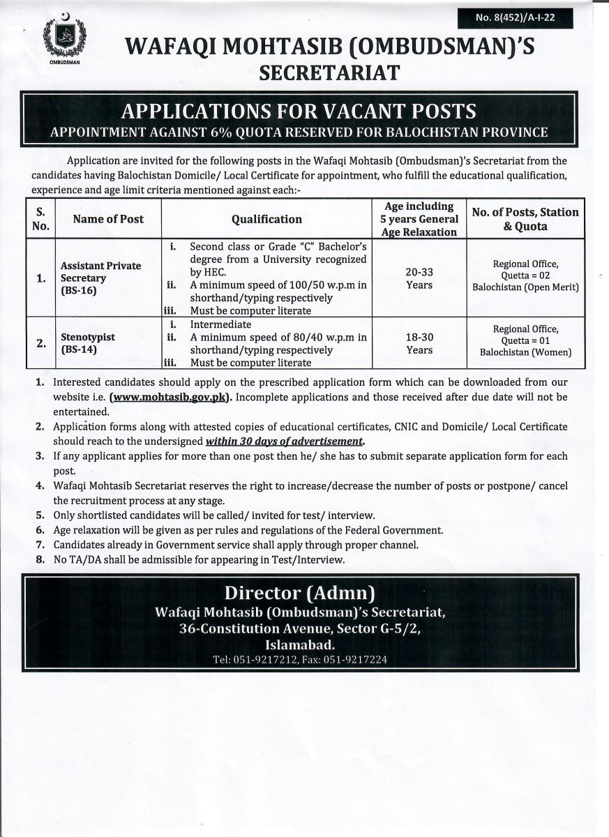 Wafaqi Mohtasib (Ombudsman)'s Secretariat وفاقی محتسب سیکر ٹیر یٹ
