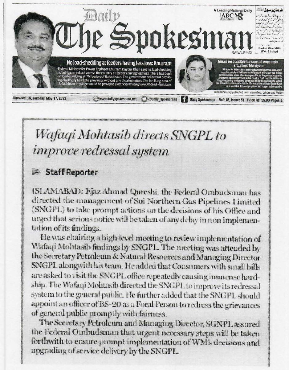 Wafaqi Mohtasib (Ombudsman)'s Secretariat وفاقی محتسب سیکر ٹیر یٹ