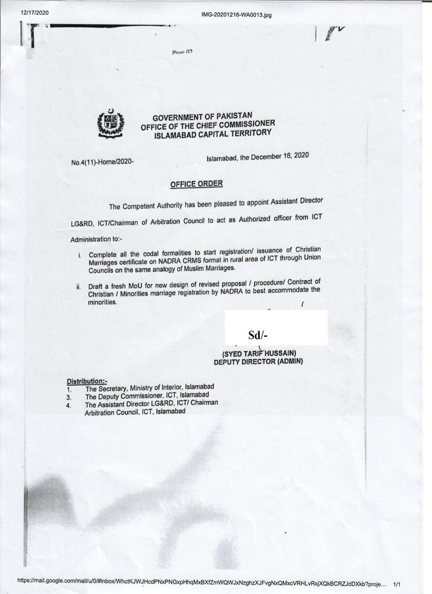 WMS-ONL/0009161/20 Christian Marriage Registration Certificate