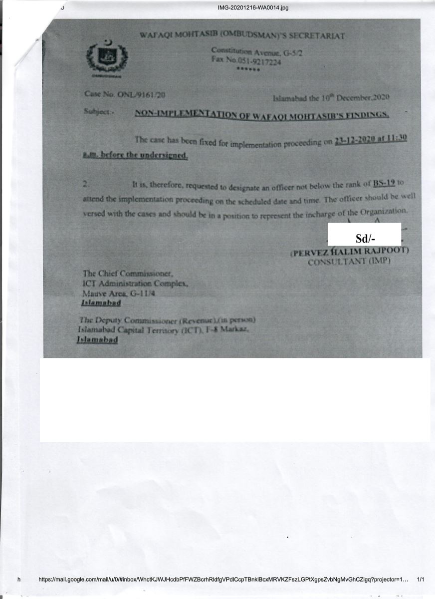 Wafaqi Mohtasib (Ombudsman)'s Secretariat وفاقی محتسب سیکر ٹیر یٹ