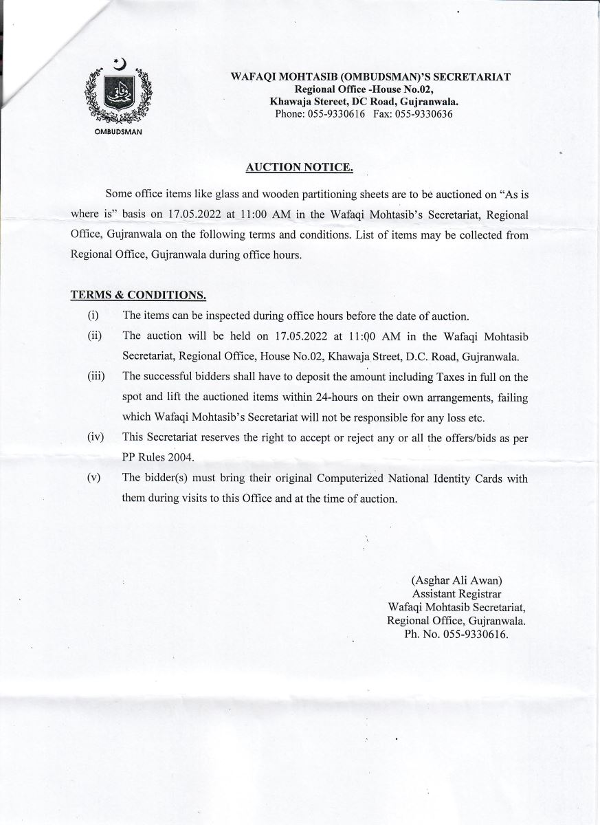 Wafaqi Mohtasib (Ombudsman)'s Secretariat وفاقی محتسب سیکر ٹیر یٹ