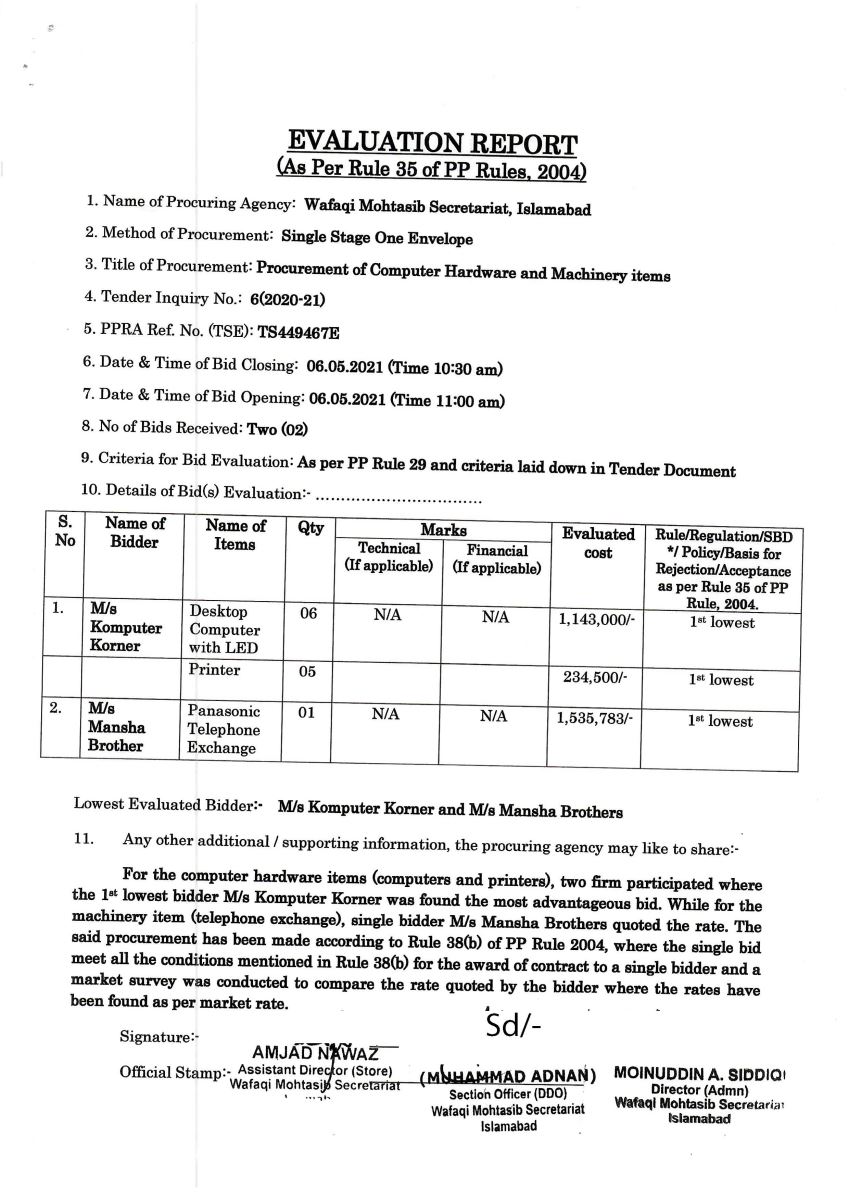 Tender Evaluation Report