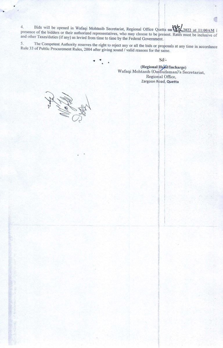 QTA Tender Notice (2021-22): Procurement of computer hardware and misc. items for the Regional Office Quetta.
